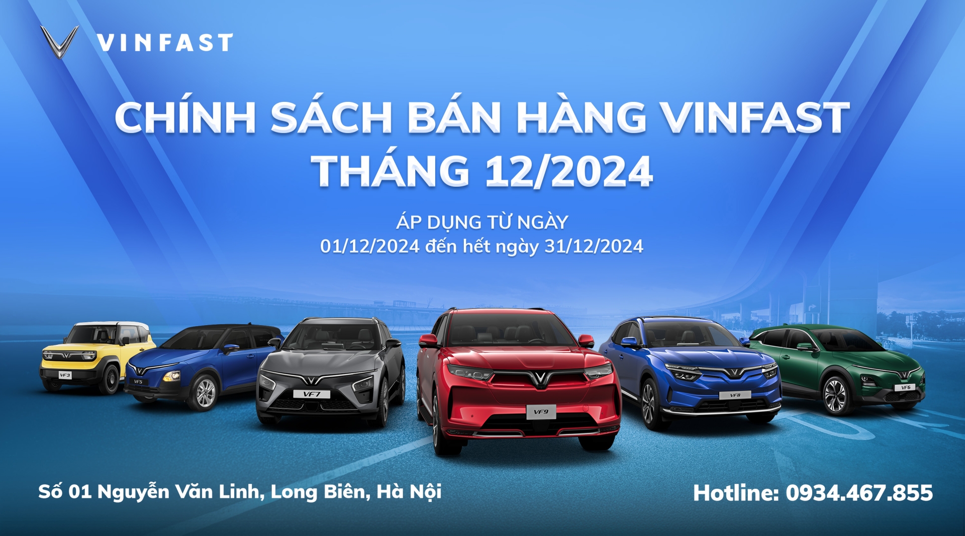 Theo đó, từ ngày 01/12/2024 đến hết 31/12/2024, các khách hàng đặt cọc các mẫu xe VF 3/5/6/7/8/9 sẽ được nhận các khuyến mãi cực giá trị như: